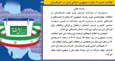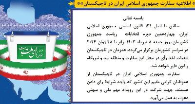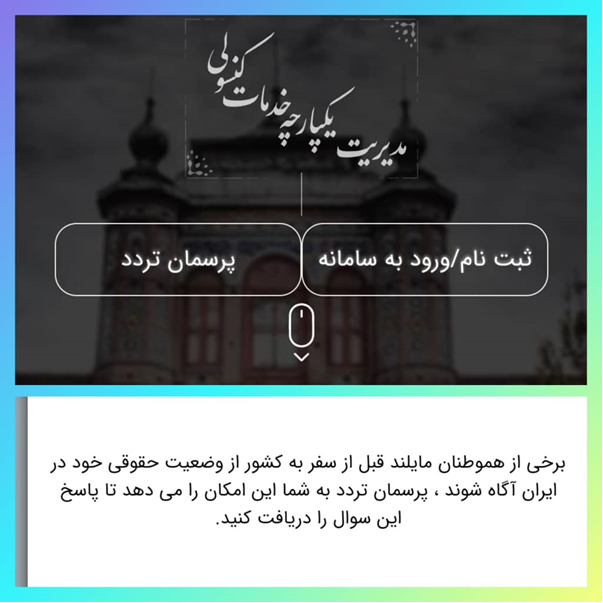 به آگاهی هموطنان عزیز مقیم تاجیکستان می رساند؛ با توجه به دستور جناب آقای امیرعبداللهیان وزیر محترم امورخارجه، وزارت امور خارجه جمهوری اسلامی ایران در پاسخ به درخواست هموطنان و به منظور شفاف سازی وضعیت ایرانیان مقیم خارج، سوابق و ممنوعیت های احتمالی تردد و رفع نگرانی و دغدغه‌های محتمل جهت تردد به کشور، خدمت جدیدی تحت عنوان «پرسمان تردد» در بخش اکسترنال سامانه مدیریت یکپارچه خدمات کنسولی (سامانه میخک) به نشانی: mikhak.mfa.ir   طراحی کرده است.